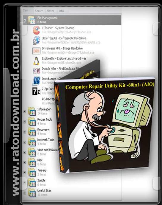 Computer Repair Utility Kit AIO permite que você execute todas as ferramentas de reparação da sua unidade portátil (por exemplo, USB Flash Drive, Disco rígido externo, iPod, etc) e vem com opção para o menu do botão direito, fácil de usar. Indispensável para qualquer técnico de informática.